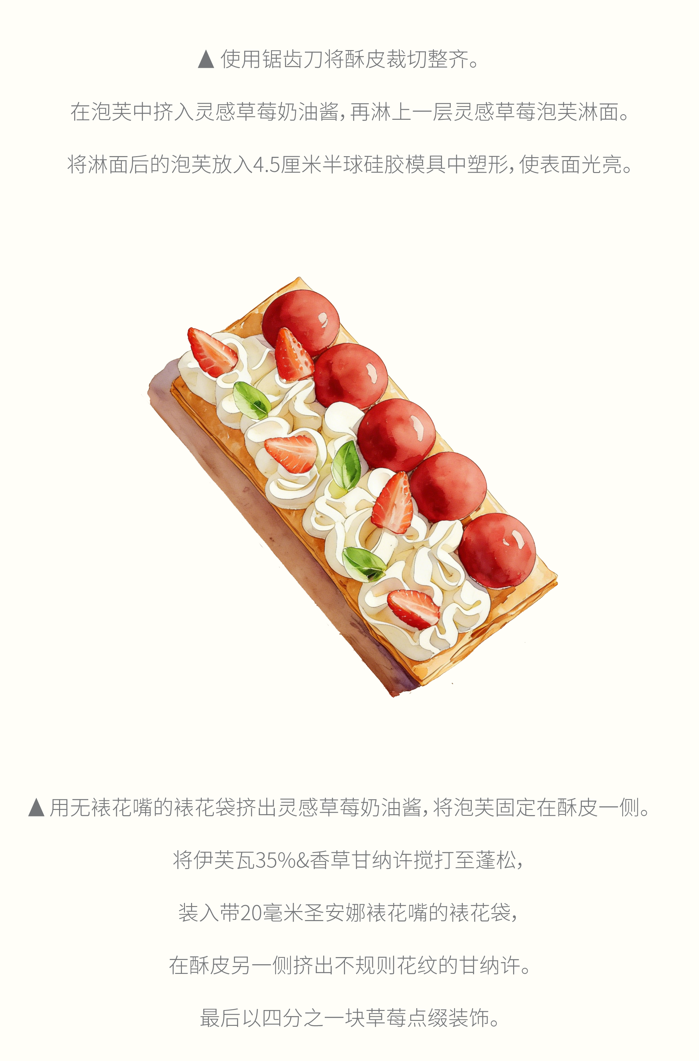 绯红草莓点缀于象牙白奶油之上